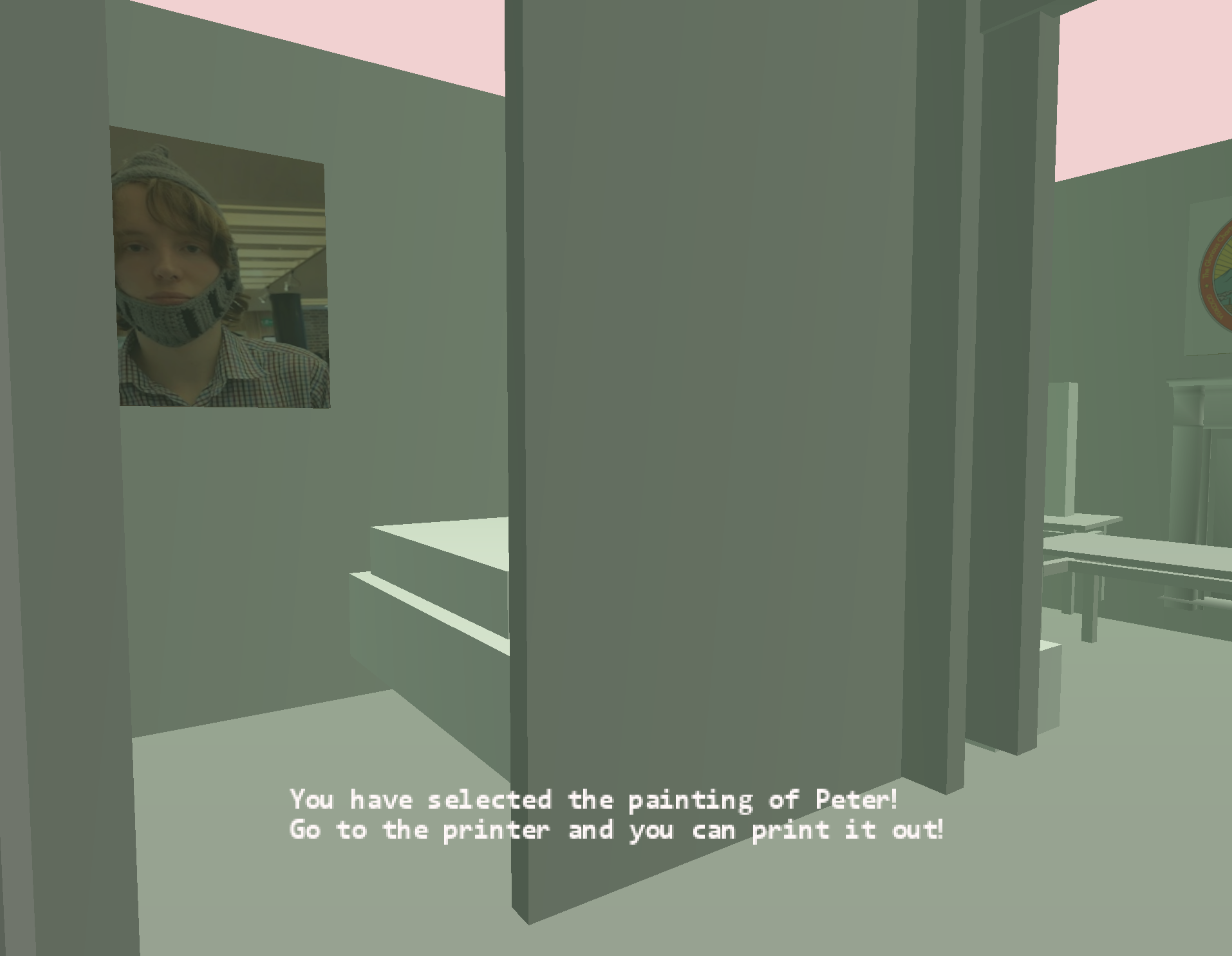 The aim was that people could walk around the virtual flat, select paintings from the wall, and print it out. The paintings were now on the virtual walls, but the program had to have a way of knowing what painting was selected.